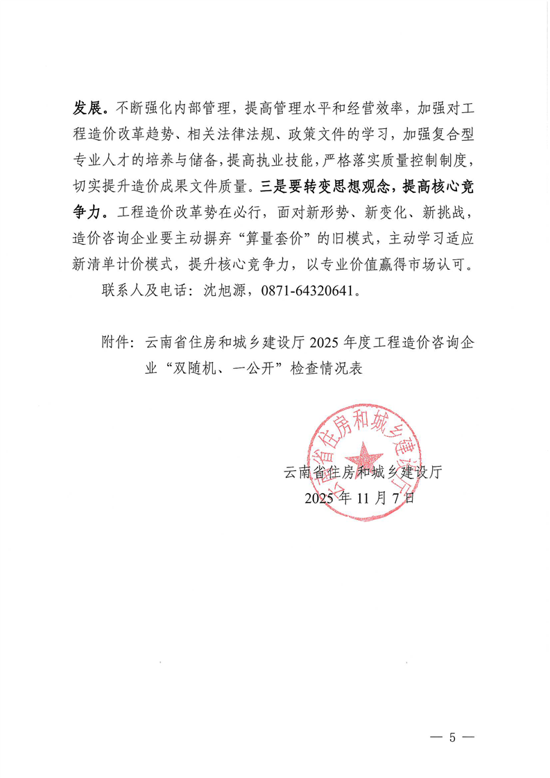 云南省住房和城乡建设厅关于2025年度工程造价咨询企业“双随机、一公开”检查情况的通报
